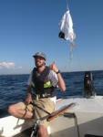 Det skulle nog räcka en bit att ha lite folk i fören för att få upp aktern så pass att det går att byta, en annan sak jag tänkte var. Nu när jag stänkt ventilerna kan jag ju försöka pumpa får ur vattnet som är slagarna, och förhoppningsvis kunna se om det är tätt underifrån? // Theodor