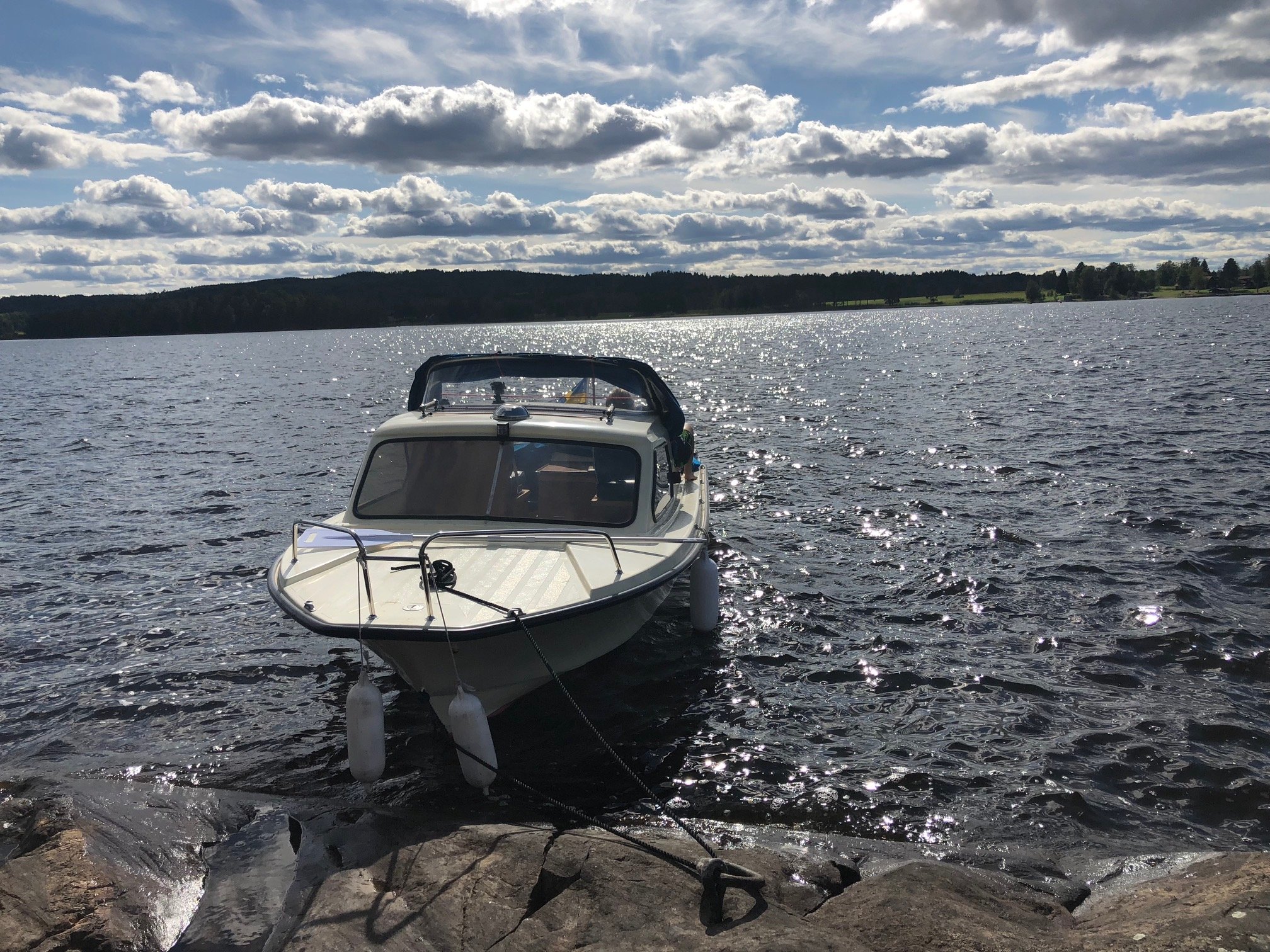 Ja, jäkligt. Obetänksamhet blandat med oflyt... Just nu har vi ca 3-4 dm lägre vattenstånd i Siljan jämfört med i sommras, så är ju en hel del nya grund som dyker upp 😕 Jag körde framåt, så skeddan kan ju tagit emot. Men var ingen smäll som fick stopp på båten utan vi flöt vidare. Grundet verkar ha varit väldans litet så med lite ”tur” har propellern bara tagit emot vid sidan av skeddan. Såg inget på skeddan igår. Jag ska undersöka den ordentligt idag.