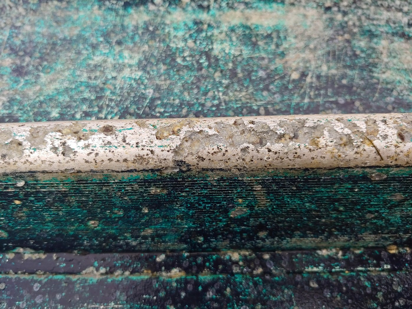 Jag har ärvt en aluminium båt, en Linder 440, som är 13-15 år gammal. Nu när vi tog upp båten och rengjorde den så upptäckte jag att det var många små kratrar och även ett hål, se bilden med grässtrået. Vi funderade först om det var havstulpaner som orsakat dessa kratrar, men nu är vi mest inne på att bottenfärgen kanske är boven. Båten har tidigare blivit bottenmålad (se foton), och min fundering är om denna färgen har varit kopparbaserad. Verkar en tidigare ägare har varit någon Hempel-färg, men inte bekräftat, jag har även letat efter gamla tomma burkar utan resultat.