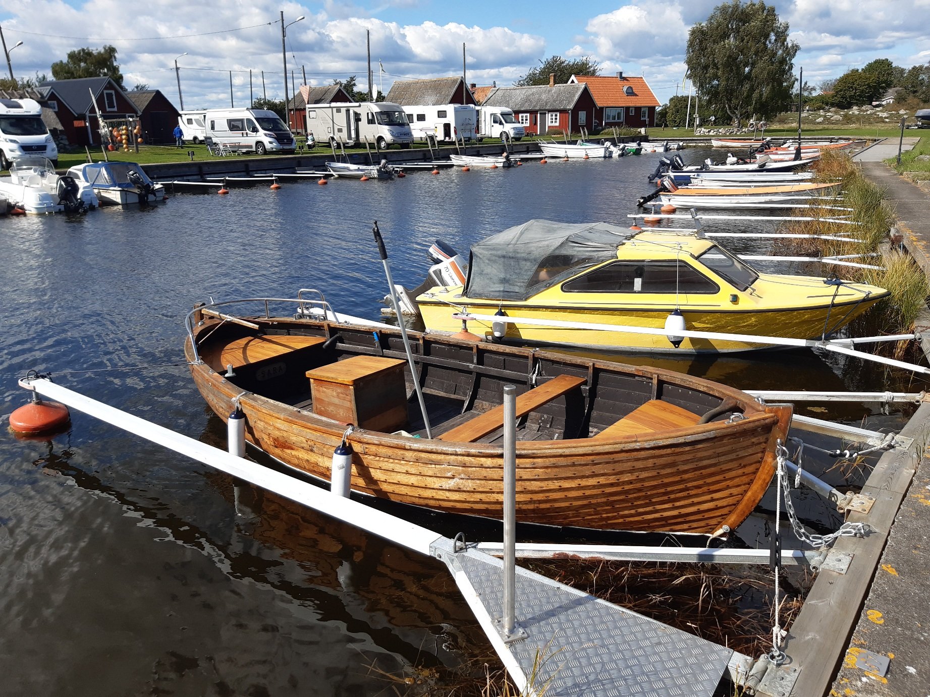 Hej! Hösten är på gång och det börjar bli dags för underhåll av min träsnipa. Jag undrar vad jag ska behandla skrovet med invändigt? Jag tror att den har varit behandlad med tjära eller roslagsmahogny, vad tror ni? Som ni ser på bilden så har solen gjort sitt och ytan börjar bli torr och ljus. Ska jag behandla med tjära eller roslagsmahogny? Eller finns det några andra bra produkter för ändamålet? Tacksam för svar! MVH David