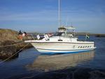 3000 varv är lite lågt, den ligger då och väger på planingströskeln om den är lastad eller har motvind. Båten väger ca. 1400 kg. Jag vet faktiskt inte riktigt vilken hastighet jag ligger i för jag har ingen exakt mätare (trycklogg). Skall införskaffa en GPS till nästa säsong, borde kunna få en bättre koll på bränsle förbrukningen och fart då.