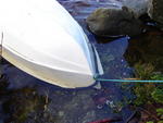 Nåja, vattnet steg upp till båten, vars för låg och skavde i vågornas takt mot en berghäll. Relingen och en bit av fören skavdes ner. Relingien ca 30cm på var sida.