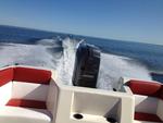 Är inte det en Sunbird Corsica som du äger? Jag har en Sunbird SPL171 med identiskt skrov fast utombordare. Mitt ekipage väger ju lite mindre än ditt tack vare min utombordare gissar jag men det är nog försumbart då min Mariner 100hk väger ca:180kg. toppfart med Solas rostfri propp är 45gps knop, jag upplever att skrovet inte tillåter så myckre högre fart dessvärre men det räcker gott och väl. Jag vågar nog gissa att du med lätthet och perfekt proppad gör 45 knop med din. jag använder en beräkning som för mig slår fel på +/- nån knop. Det gäller att man har lite mer uppgifter dock men det är kul att leka lite med tanken vad man bör ha för propp m.m för att teoretiskt kunna uppnå en viss fart. Varv * stigning * 0,05 * slip / (60 * utväxling) = fart lycka till! jag tror du passerar 45 knop vallen :0)