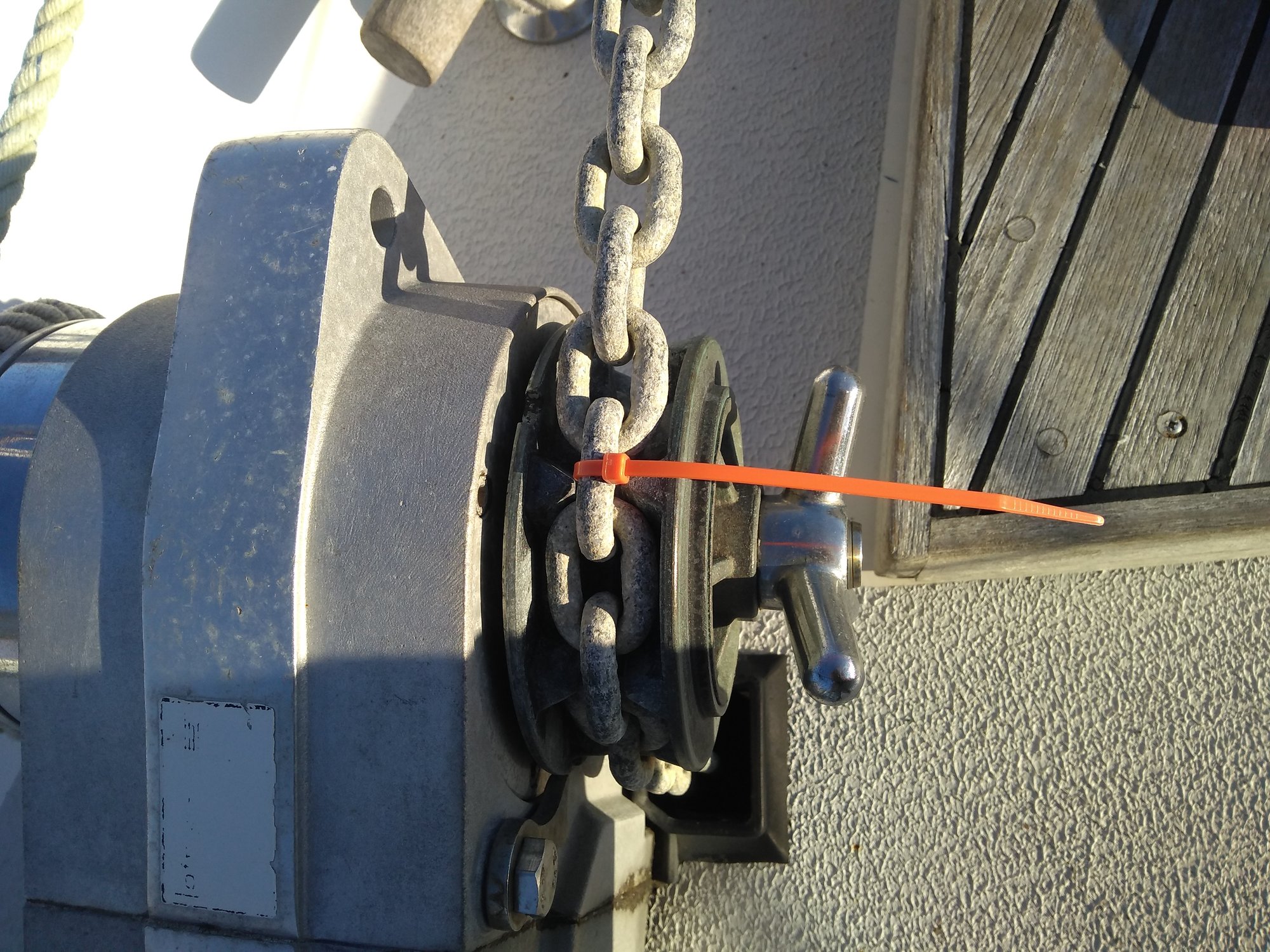 På stora fartyg har jag sett att hela kättingsektioner är målade, i alla fall mot slutet.