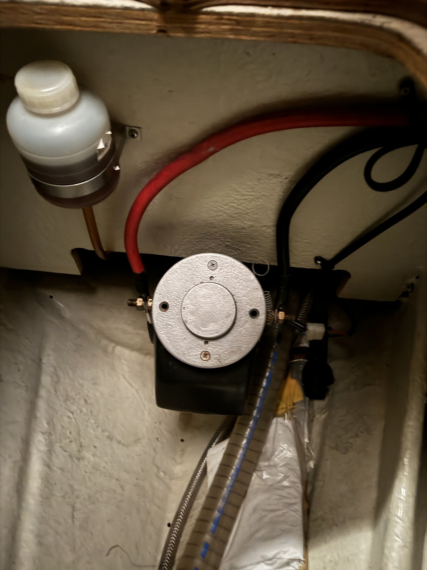 SoToDoBo 3 Postad 26 December , 2023 Hej, förra vintern så välte behållaren med hydraulolja och tömdes ut i kölsvinet. Det kan ev. ha kommit olja över motorn, men det tror jag inte för jag säg/kände ingen olja och dessutom sitter behållaren vid sidan om motorn (se foto). Jag fyllde på ny olja i behållaren, men jag luftade aldrig undertill vid propellern. I somras gick bogpropellern på halv fart, MEN bara åt ena hållet. Åt andra hållet gick den som den skall göra. Modellen är : SP55 S (från 2004) Då bytte jag ut förbrukningsbatterierna som var 10 år, men det blev ingen förbättring. Tänker i nästa steg ta loss kablarna på motorn, göra rent, fetta in osv, men det kommer troligen inte att hjälpa. Vet du vad detta fel beror på, eller vad är ditt tips att jag bör göra nu? Dela detta inlägg Länk till inlägg Dela på andra webbplatser