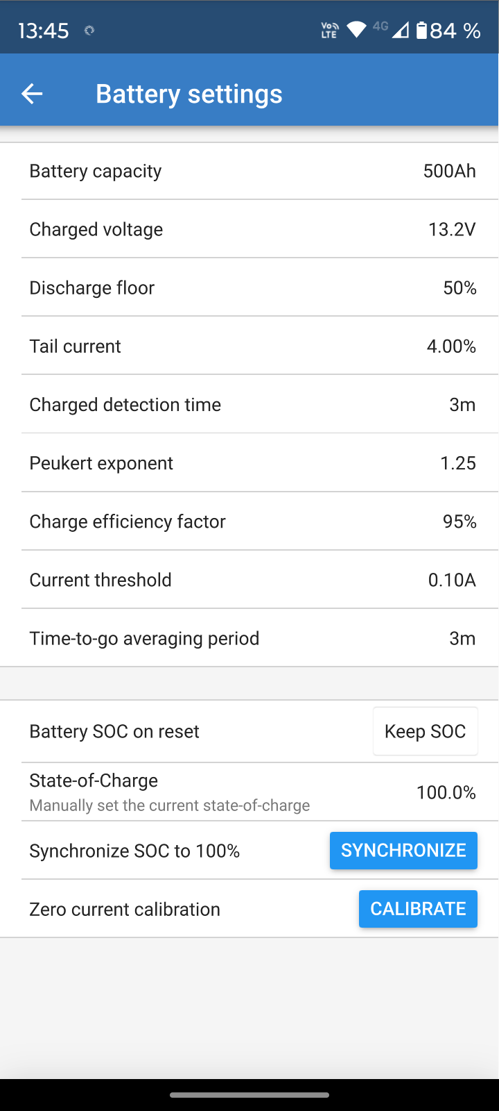 ChristerN 2 716 Postad 13 Februari , 2024 52 minuter sedan skrev patrikflink: Här kommer min shunt, laddare och regulator: Om jag vore du så skulle jag sänka "equalization" till samma spänning som "absorption" så du inte av misstag klickar på Manual equalization "START NOW". Har man GEL eller AGM så ska man inte köra equalization, det är tämligen klart men jag vet faktiskt inte om man ska göra det på slutna batterier som @Janne1 har. Jag gissar att man inte ska det. (någon annan får protestera/verifiera) 1 Dela detta inlägg Länk till inlägg Dela på andra webbplatser
