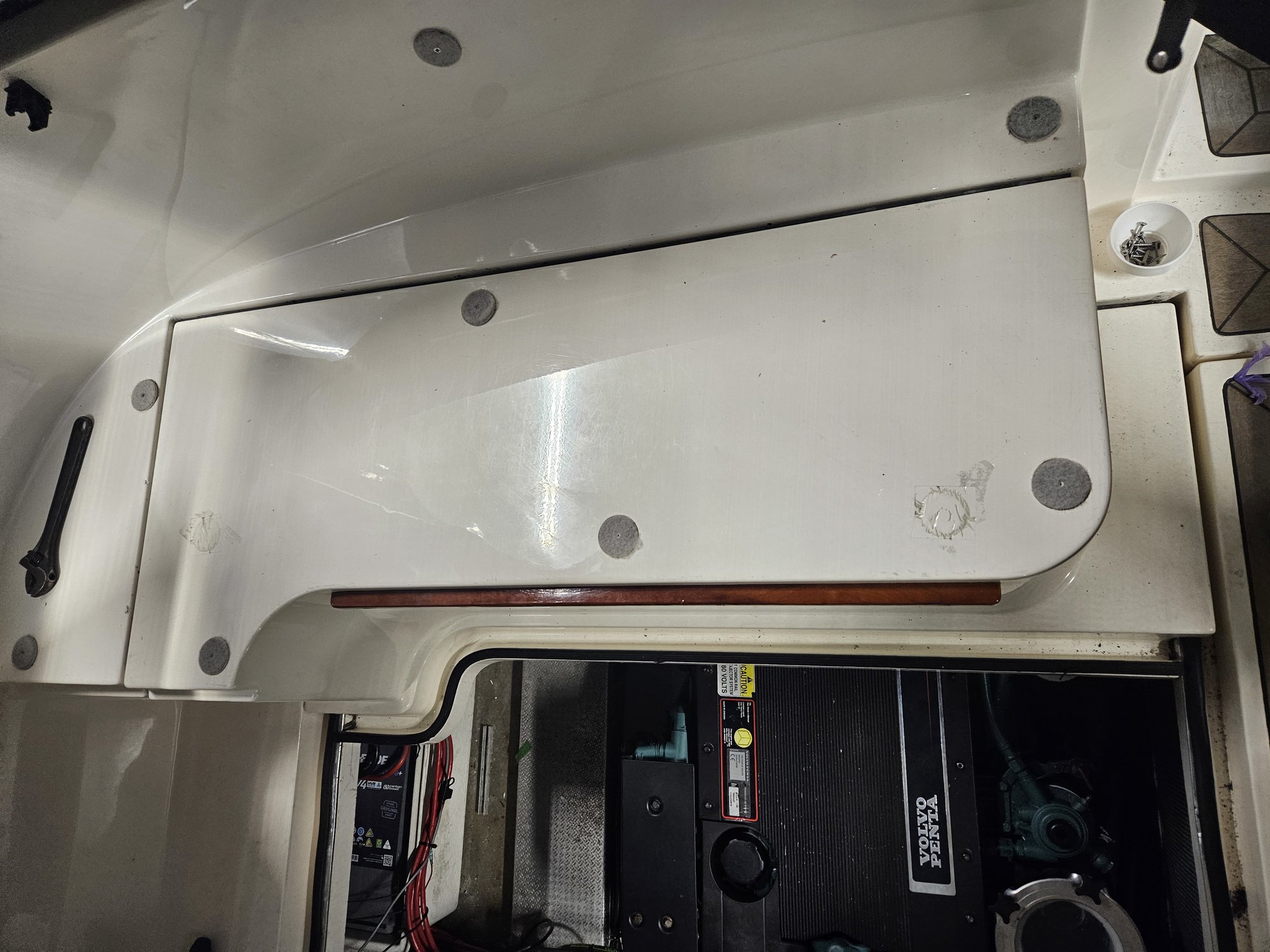 UlfSa 0 Postad lördag kl 10:37 Hej Är det någon som kan säga hur man får bort den bakre soffan, så man kommer åt hela motorn Har tagit bort förvarings lådan bakom lucka på akterdäck Skruvat lös ett antal skruvar som håller soffan Men det sitter 4 st genomgående bultar inne i den lådan, se bild Måste dom bort? Hur kommer man åt dom på insidan isåfall Verkar som att motorn till ankarspelet också sitter där Mvh Ulf Dela detta inlägg Länk till inlägg Dela på andra webbplatser
