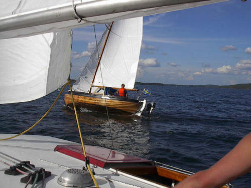 Jimsan 0 Postad 29 Februari , 2008 Vår första båt var en Klink bygd Koster i furu på ekspant från 1950 Den hade 2st glödlampor och en 9hk utombordare. Mat lagades på stormkök! Lite modefierad rymde den 8-10 personer. den fylde alla behov vi hade då och tålde mycket värre väder än besättningen (även om masten gick i sjön) När fritiden inte längre räckte till för att slipa lacka och tjära, byta ruttet trä m.m. blev det en Katamaran en dacapo 20EVO Nu hade vi pltsligt lyx som elstart gasreglage i sittbrunnen rullfock lacyjax gasolspis diskho värmare och masor med lyx. att ståhöjden var 1.50 och man fick sitta som en skräddare vid matbordet gjorde inte så mycket under soliga sommarveckor, men en semester i regn var ingen lek. Närfamiljen växte (eller familjerna för vi var två ägare på båda båtarna) var det dax att skaffa eget. Vi köpte vår bavaria och kompissen en Adagio, kan inte påstå att någon av oss gjort en bättre eller sämre affär, vi slipper torsätta vår båt mitt i sesången för att byta propellertätning men får istället lämna båten på garantiservice pga ett missljud. Den grundgående adagion får agera landgång i grunda vikar medans vår bavaria fårvara salong vid gemensamma middagar. Summan av det hela blir att alla båtar har sina egenskaper, och man bör fundera på vad och hur man ska använda båten till. Planerar man att korsa atlanten är det en typ av båt som gäller vill man ha en sjön semester på kusten så är det en annan. Dela detta inlägg Länk till inlägg Dela på andra webbplatser