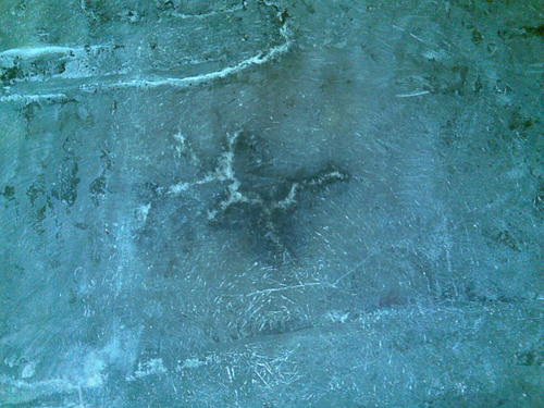 ser ut som en kross skada utefrån, jag la märke  till den för sprickornas sätt att spridas.