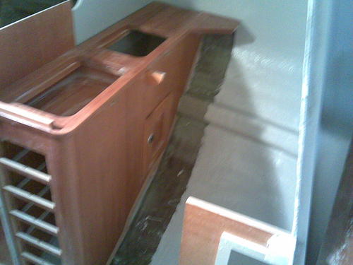 har målat stick kojen och motor rummet med grå topcoat ett tjockt lager. med roller.
