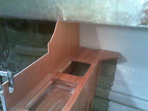 kommer att slipa på utsidan oxå och göra likadant fast inte lika djupt. antar att laminatet inte kan  var så mkt tjockare än 15mm här.  men däromkring.