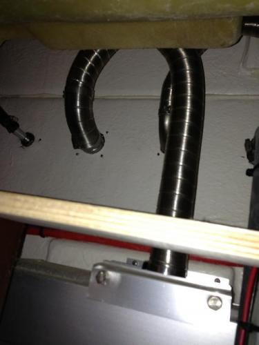 tibrolito 0 Postad 11 Juni , 2013 Jag kom åt den ena (till septiktanken) genom luckan framför diskhon men det var precis. Den andra tror jag du lättast kommer åt om du skruvar loss kylskåpet (sitter bara med fyra skruvar, två från lådsidan och två frammifrån) och drar ut det. Då borde du få bra tillgång till båda. Ett tips är att lägga något, t.ex. en handduk på durken innan så att den inte repas av kylen. Bifogar bild tagen genom hålet som blir när man drar ut kylen. Jag tror det är den svarta slangen som syns uppe till vänster i bild. Dela detta inlägg Länk till inlägg Dela på andra webbplatser