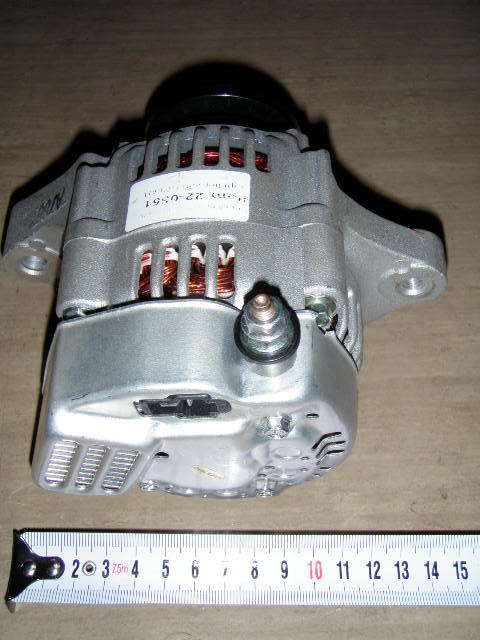Thomas-1 311 Postad 9 Juni , 2009 Lägger ut uppgifterna om generatorn här eftersom de ju är så svåra att hitta. Förhoppningsvis kan detta hjälpa nån annan!? Det är en Kobota alternator 14V 40A typ SHB-078 som uppfyller standarden TS 16949. Anslutningar: 1. Generator-utgång; den stora polskruven (se bilden ovan). En särskild adapter finns för extra bra passning till 16 mm^2 kablars press-kontakter. 2. Laddningslampa; det vänstra flatstiftet av de två i bildens tvåpols-kontakt. (Dessa stift sitter i bilden som ett liggande T , så den vertikala T-bokstavsdelen - i ett stående - T är alltså för laddningslampan. Löjligt tillkrånglad beskrivning men det måste ju bli helt otvetydigt. Glödlampan bör dra minst 3-4 watt, för säker funktion. 3. Matningsspänning för den inbyggda laddningsregulatorn; ansluts följaktligen till T:ets horisontella flatstift. (till höger i bildens kontakt) 4. Minus; höljet. Både 2 och 3 ovan kopplas från tändnings-nyckelns 12V, 2:an skall också ha laddningslampan i serie före anslutningen till generatorns flatstift. In- och ur-koppling av laddningen kan ske med en extra strömbrytare, båda ledningarna bör brytas.((2.an avbryter ensam laddningen)), men 3:an bör också brytas för det går annars - märkligt nog - ca 4A baklänges i generatorkabeln till batteriet då tändningen är påslagen Edit: Påståendet i frågeinlägget är alltså fel, det blåparantesade ovan stämmer däremot. Albinmotor-inkoppling; Inkopplad på svänghjulet till en Albin O-11:a fås lite för hög utväxling, generatorn snurrar ca 4,75 varv per motorvarv. Vid uppstart av motorn måste därför laddningen vara avstängd annars orkar inte motorn varva upp. När motorn väl startat och varvats upp lite så laddar den bra nästan ända ner till tomgång - som då ev kan bli lite opålitlig vid känsliga hamnmanövrer!? Vid inkoppling av laddningen slirar f.ö. remmen till lite och tar upp belastnings-chocken, och sannolikt blir chocken faktiskt mindre ju högre motorvarvtalet är. Funkar alltså helt OK, men ett större kilrems-hjul på generatorn är nog önskvärt för att slippa av/på-hanterandet, men men... Senast ändrad av Thomas-1 | 09 juni 2009 | 19:21 Dela detta inlägg Länk till inlägg Dela på andra webbplatser
