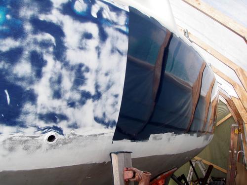 Misil-1 5 Postad 15 April , 2010 Hej, jag ska lacka om friborden på min Stofidra och tänkte prova en sån där sträckfärg av fabrikat DoubleCoat. Har lackat med roller med lite olika fabrikat på andra båtar genom åren och resultatet har väl inte varit direkt strålande men ändå helt OK, tycker jag. Den här Double Coaten krymper något vid härdningen och ska ge ett helt slätt resultat, står det i skrytbrochyren, vi får väl se. Tänkte att det kan vara av intresse bland några i församlingen, så jag lägger ut lite bilder. Friborden är nu slipade med 120-papper och grundade med epoxyprimer som rollat med fin skumrulle i ett tunt lager. Nu ska primer slipas ned med 240-papper tills ytan blir jämn och fin. DoubleCoaten ska lackas vid en temp på minst 15 grader, 20 grader rekomenderas, vilket just nu är mitt största bekymmer. När solen skiner så blir det lätt 20-25 grader, men skrovet blir på tok för varmt. Så det gäller att pricka in början på några varma dagar och börja rolla innan solen står för högt. Fler bilder finns i mitt album Dela detta inlägg Länk till inlägg Dela på andra webbplatser