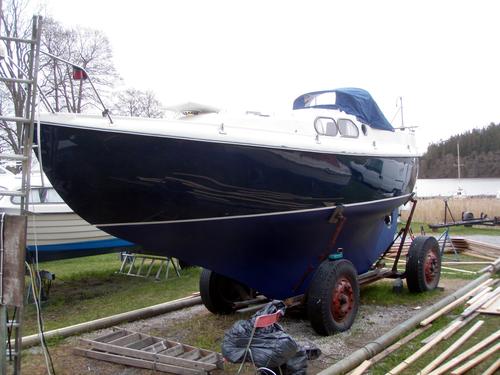 Misil-1 5 Postad 13 Maj , 2010 Nu ligger hon i sjön. Nu återstår att slipa, rubba och vaxa den övre halvan av båten. Gelcoten är översållad med mikrosprickor och kraftigt oxiderad. Det ser bra ut när det är nyslipat och vaxat, men risken är att det inte håller så länge. Det lutar åt att jag rollar den delen nästa vinter Dela detta inlägg Länk till inlägg Dela på andra webbplatser