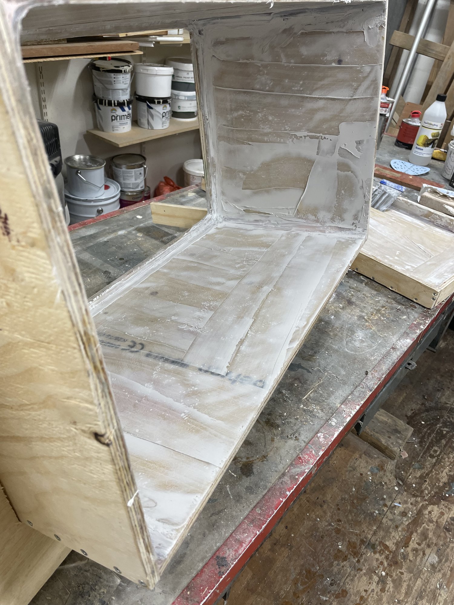 IvarN 287 Postad 17 timmar sedan Jag hade missbedömt arbetet rejält med att få en bra yta på formens insida, så det blev en herrans massa slipande. Dessutom hade jag dessvärre även tydligen slarvat när jag laminerade, så jag behöver slipa och spackla ett par vändor till innan ytan duger som underlag. Dela detta inlägg Länk till inlägg Dela på andra webbplatser