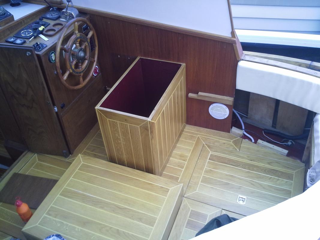 IvarN 282 Postad 23 Juni , 2015 Då sitsen är excentrisk så blir det lyftkrafter i boxens ena sida. Jag limmar därför in en rejäl regel bakom inredningens teakplyfa. Dela detta inlägg Länk till inlägg Dela på andra webbplatser