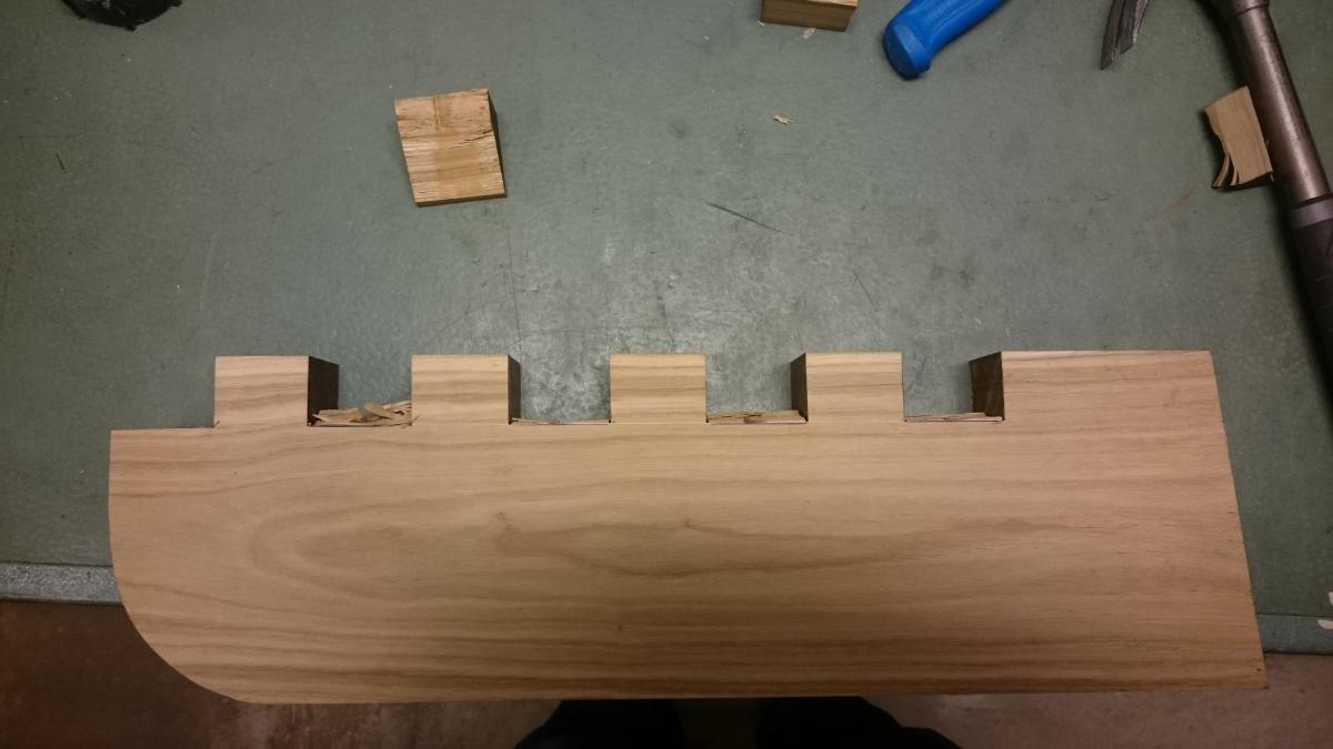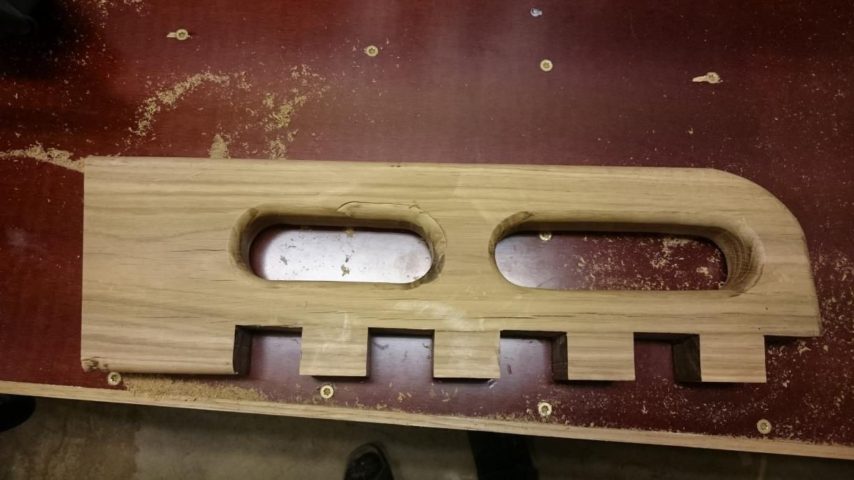 IvarN 282 Postad 9 Juni , 2015 Bestämde mig istället för att såga ut två handtagsformade urtag, det är alltid bra att gödsla med handtag i en snipa som rullar för jämnan. Sågade urtagen med sticksåg, riktigt dålig idé då det inte är självklart att klyva 45mm kärnek med ett sticksågsblad. Blev dessutom riktigt fult i böjarna. Hade varit betydligt bättre att använda hålsåg av lämplig dimension och sänksåg för de raka snitten, får bli nästa gång. Dela detta inlägg Länk till inlägg Dela på andra webbplatser