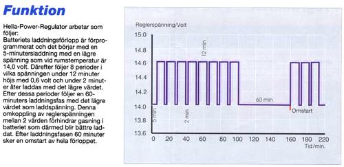 bhemac 2 859 Postad 31 Oktober , 2012 Tomas99 har helt rätt, spänningar över 15V är skadliga (utom vid utjämningsladdning under kontrollerade former). Men, man måste också kolla hur mycket ström som går till batteriet. Är batteriet i dåligt skick så kan man skicka på en hög spänning utan att få upp strömmen. -- Utjämningsladdning - Löser upp blysulfat som bildats på polerna. Hindrar batteriet från att åldras permanent. - Blandar om elektrolyten. - Jämnar ut skillnaden i laddning mellan olika celler. Tvingar batteriet till den högsta möjliga nivån av laddning. Efter att batterierna har nått slutet på acceptansladdningen, fortsätter man att ladda med 4% av C tills spänningen sluta att stiga (oftast omkring 15,5 - 16,2 V). Detta kan ta några timmar. Eftersom elektrisk utrustning och lampor kan skadas vid en så här hög spänning , skall batteriet vara off-line. Efter en utjämningsladdning kokar det bort en del vatten, så det är lämpligt att fylla på vatten när laddningen är klar. Dela detta inlägg Länk till inlägg Dela på andra webbplatser