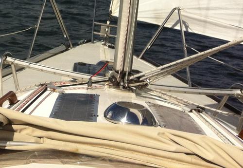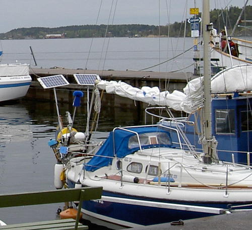 toaen 510 Postad 29 Januari , 2013 På min nuvarande båt går det inte att montera pinnar i aktern utan att man måste göra en del extra fästen. Monterade dem tillfälligt (2009 ) i ett handräcke på rufftaket. Dessvärre saknar även jag luckgarage och luckkonstruktionen är så dum att om det regnar mycket så regnar det in. Har börjat bygga på en sprayhood vars huvudsakliga del betår av en solcellspanel med en teakram runt. Vår stackars kapellmakare får sy ett par trianglar i kapellväv som täcker sidorna i uppfällt läge. Det finns många mer eller mindre sofistikerade sätt att montera solcellspaneler. Dela detta inlägg Länk till inlägg Dela på andra webbplatser