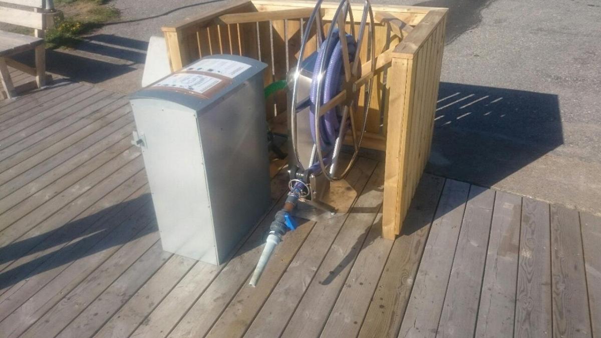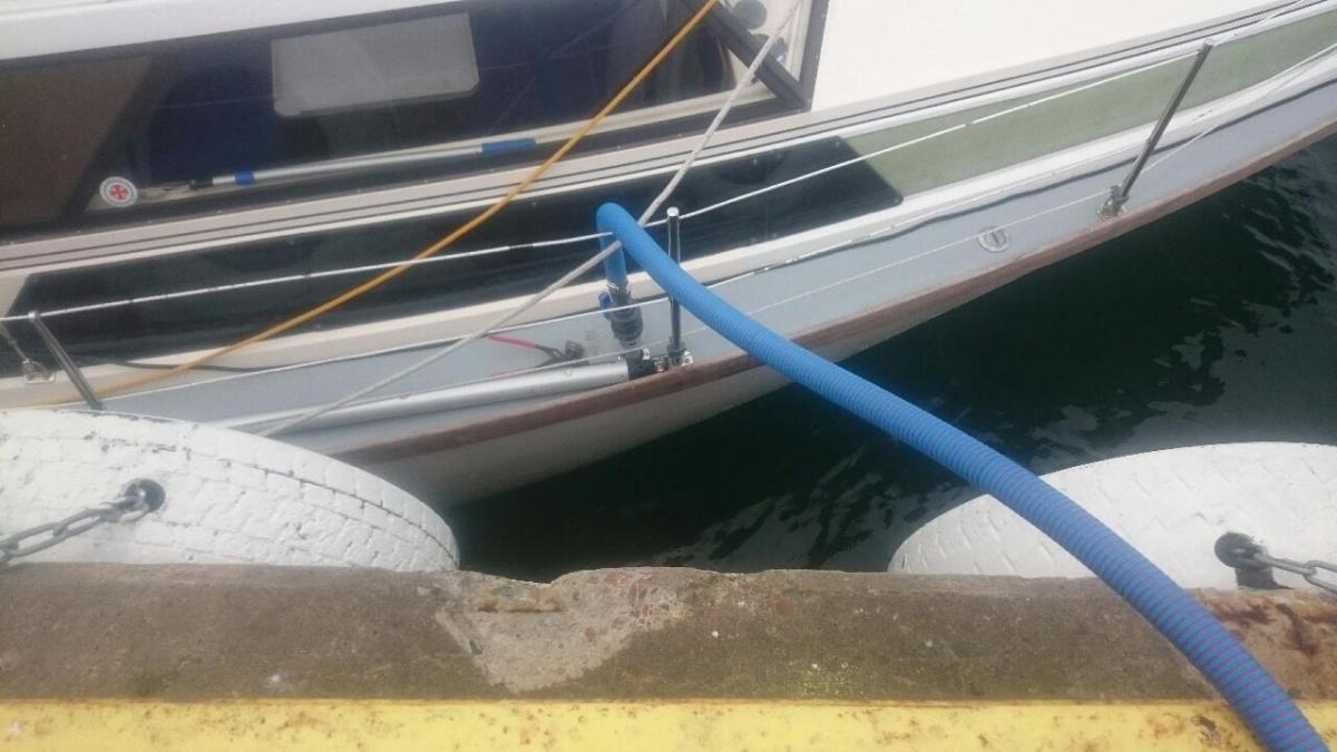Georg_Ohm 5 099 Postad 7 Augusti , 2016 Hönö Klova. Kombinerad dieseltankning, vattentankning och sugtömning. Ligger på nocken av den stora betongkajen. Idag 6-7 m/s rent västlig vind, blåste bort från nocken. En del större permanent förtöjda båtar på båda sida om denna nock underlättar inte tilläggningen. Det blev till att backa in med rodret (=drevet) dikt sb och köra fullt ös med bogpropellern åt samma håll. Snygg och bra brygga, men ingen avfendring. Den där sugtömningssymbolen saknades, se bild högre upp. Men ett ypperligt munstycke, som man kunde släppa, det sitter kvar i hålet iallafall. Men svårt att veta om septiktaknen är tom, då det inte finns någon genomskinlig del vid munstycket. Instruktioner på tyska och engelska, inget på svenka... Men den funkar iallafall bra, bra sug. Slangen är inte slälvinrullande vilket man kan tro. Dela detta inlägg Länk till inlägg Dela på andra webbplatser