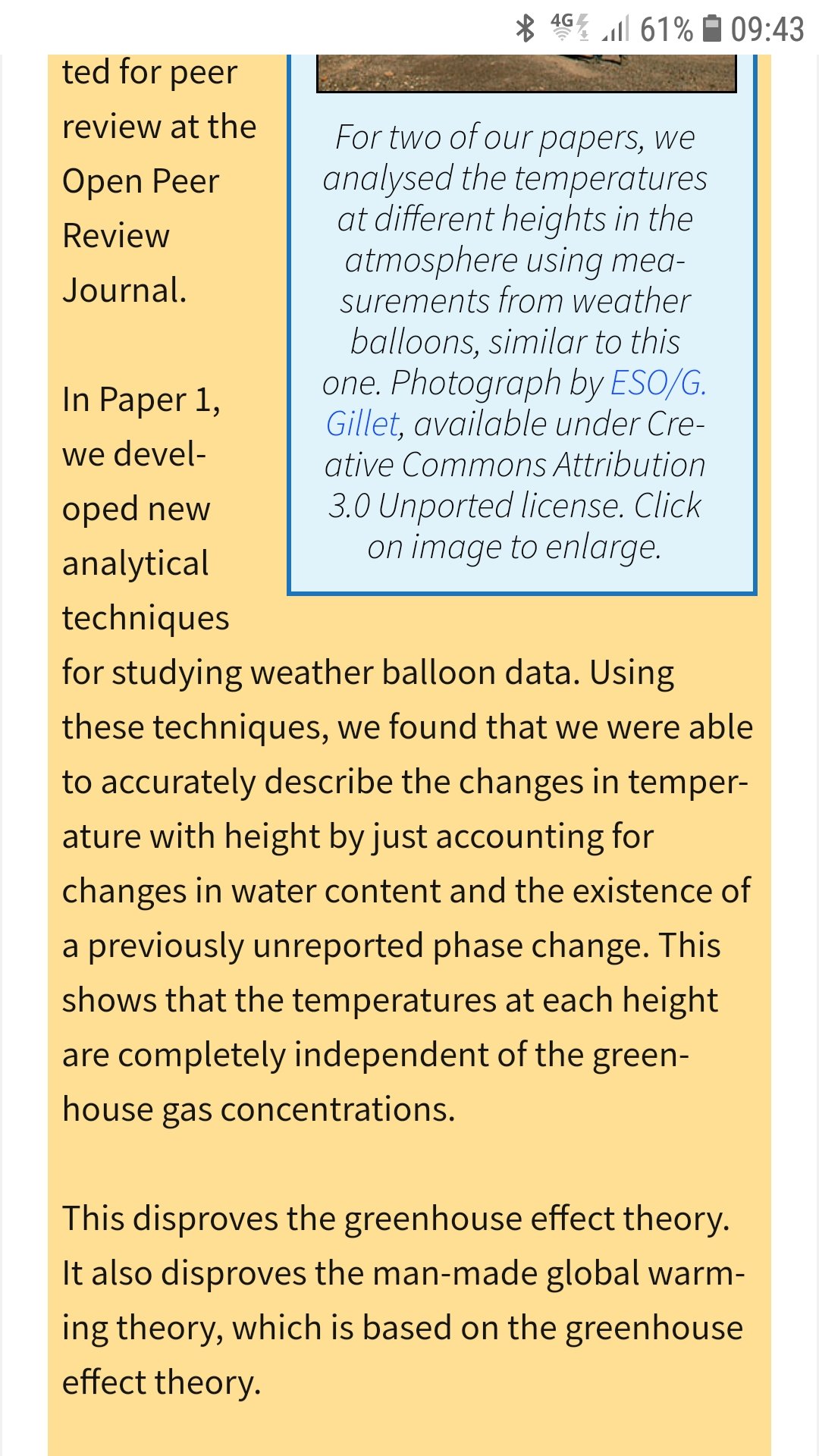 Michael och Ronan Connoly (med flera) har under fem år sammanställt mätresultat från 13 miljoner ballong uppsläpp över 80 år samt använt data från 7000 väderstationer och gjort egna labratorie experiment. Slutsatsen är enkel CO2 har ingen påverkan på temperaturen och bidrar inte till några klimatförändringar.